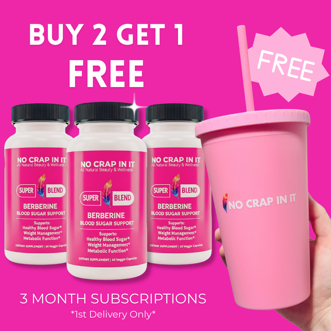 Plus, get a FREE No Crap In It Tumbler on NEW 3 Month Berberine Blood Sugar Support subscriptions.
