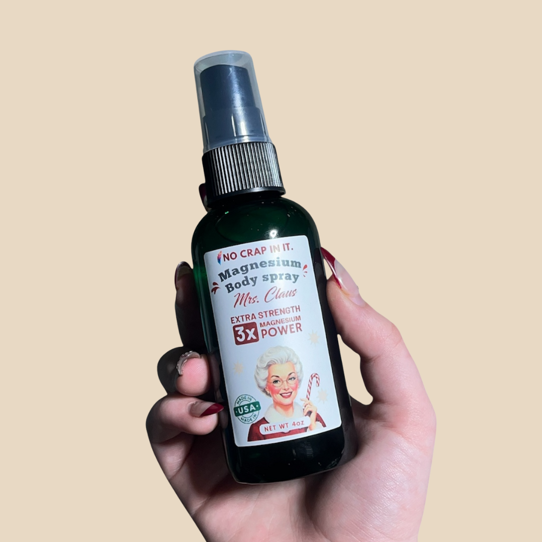 How does Mrs. Claus keep her cool during the busiest time of the year? Simple — with a few spritzes of her favorite bedtime magic, the Mrs. Claus Magnesium Spray. ✨