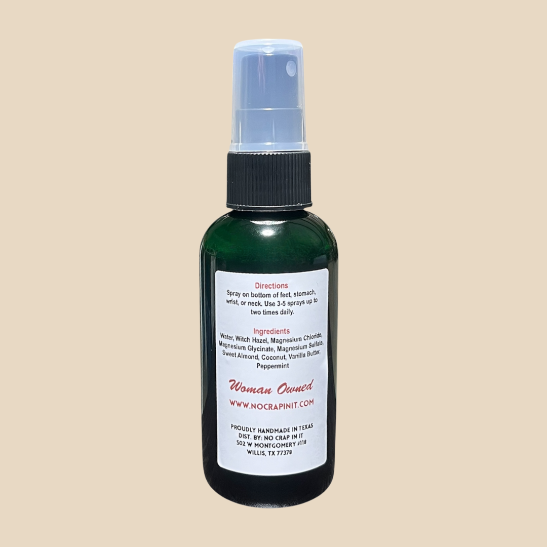 Spray 3-5 spritzes directly onto legs, feet, arms, or anywhere you feel tension. Gently rub it in and let the magnesium go to work. Use 2-3 times daily and before bed for the sweetest, most peaceful holiday slumber.